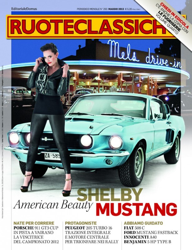 È la Shelby "Mustang GT 500" la protagonista di copertina del numero di maggio, in edicola tra qualche giorno. L'esemplare del nostro servizio, del 1967, allestito come piace al tipico cliente americano - con aria condizionata, cambio automatico e servosterzo - appartiene al musicista Alberto Radius, che la scoprì quasi per caso e se ne innamorò.