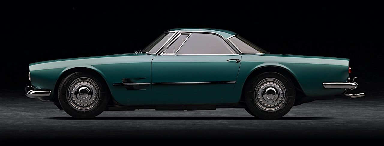 Un progetto denominato AM103. Non si tratta di una semplice personalizzazione, bensì di una nuova vettura. Il suo “cuore” è il motore 8 cilindri a V della 450S (nota barchetta da corsa del Tridente) portato con un incremento dell’alesaggio a sfiorare i cinque litri di cilindrata. Queste le principali peculiarità della Maserati 5000 GT, una prestigiosa coupé 2+2. La vettura, la cui prima realizzazione della carrozzeria viene affidata alla Carrozzeria Touring, debutta al Salone di Torino del 1959 col soprannome “Scià di Persia” in onore del committente. Di quella speciale versione se ne produssero solamente tre esemplari.