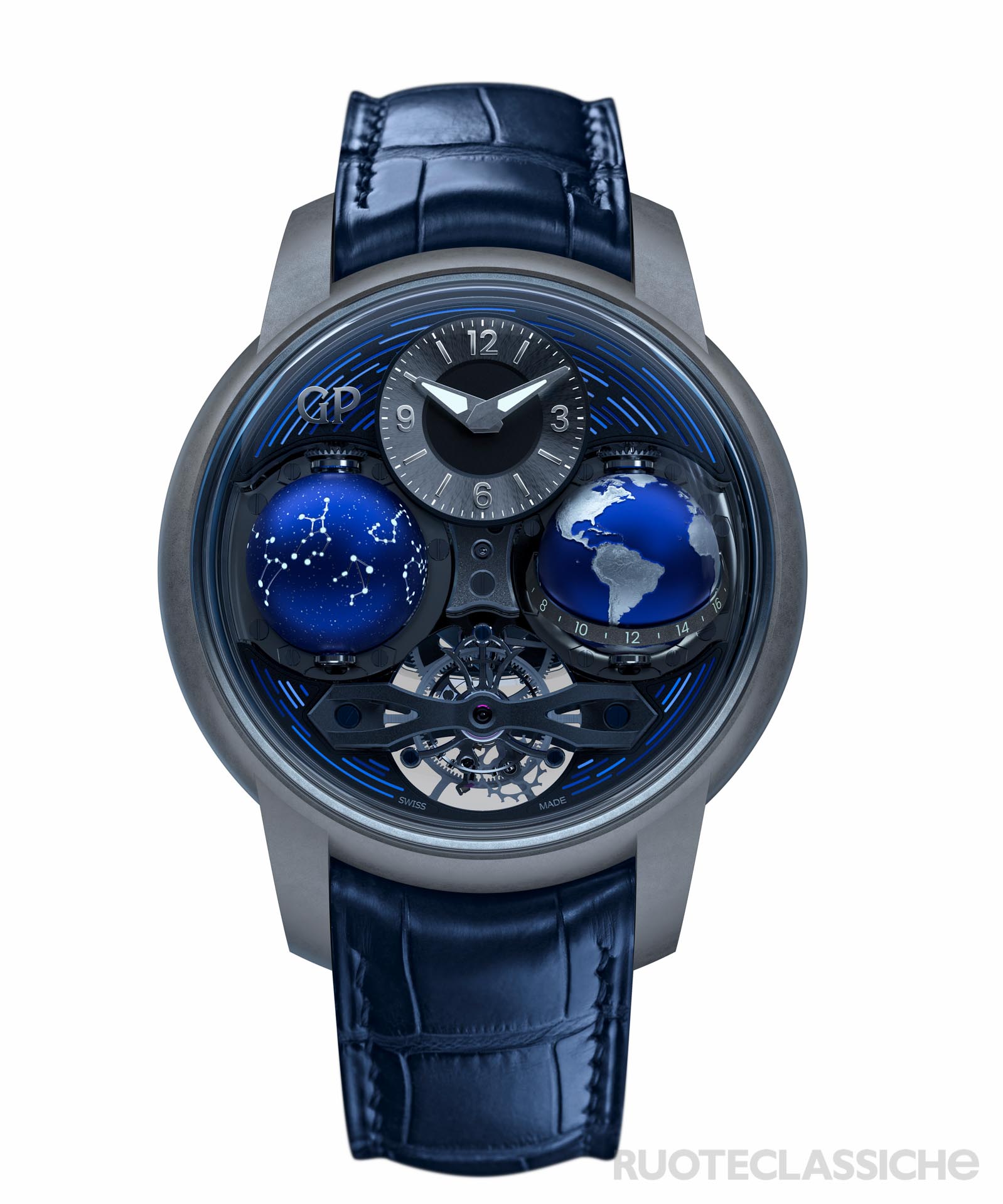 Al Sihh, aprono invece il sipario sui grandi progetti meccanici applicati alla misurazione del tempo Jaeger-LeCoultre e Girard-Perregaux, nel primo caso adottando in bella vista sul quadrante del Master in oro bianco un impeccabile regolatore di marcia tourbillon, nel secondo applicando al Cosmos in titanio l’indicazione realistica e in movimento su due globi del secondo fuso orario e delle costellazioni. E a proposito di complicazioni, chiude questa breve carrellata Vacheron Constantin, con un calendario perpetuo inserito in maniera inedita all’interno della cassa sportiva Overseas, per l’occasione realizzata in oro e con quadrante in lacca traslucida blu.