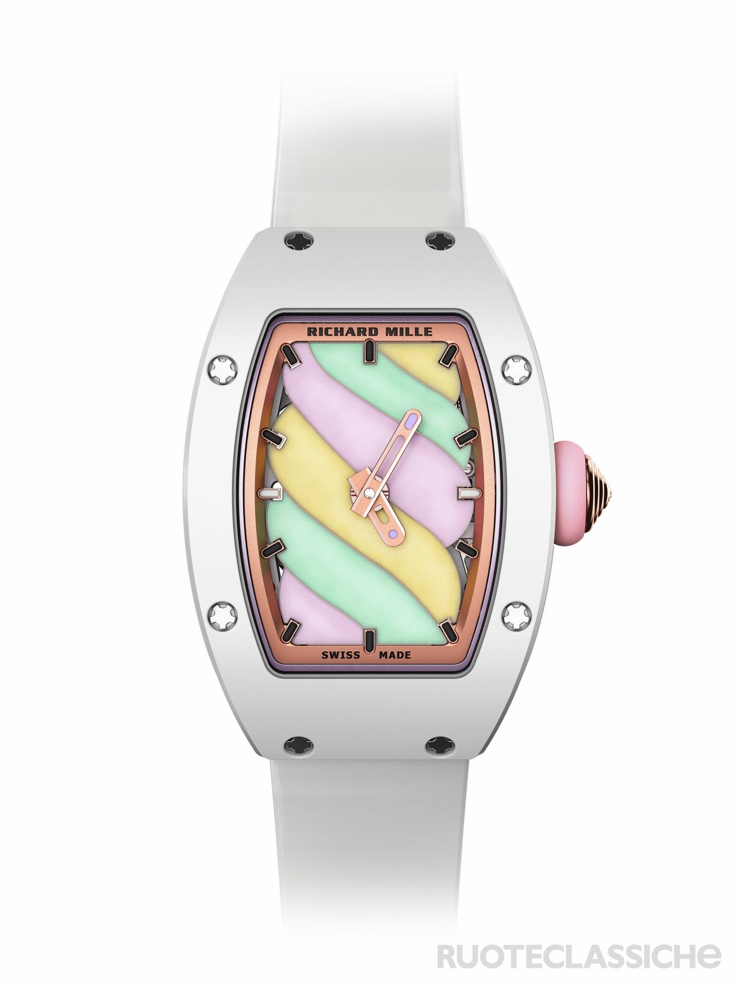 Si mostrano invece d’ispirazione militare, sia per le tinte sia per il design, le più attuali produzioni di Montblanc e Panerai, rispettivamente in campo con l’automatico Collezione 1858 in bronzo e con il subacqueo Submersible in fibra di carbonio. Infine, per la prima volta dopo tanti anni, Richard Mille presenta al Sihh novità non legate al mondo dello sport o dei motori e lo fa con la sua tipica stravaganza espressiva, questa volta ispirata con divertimento ai dolciumi, richiamati nel nome BonBon della collezione e nei loro colori, mentre Roger Dubuis nel mondo dell’automobilismo ci entra a tutto gas, con un aggressivo orologio automatico in titanio, battezzato Huracán e dedicato all’omonima supercar Lamborghini.