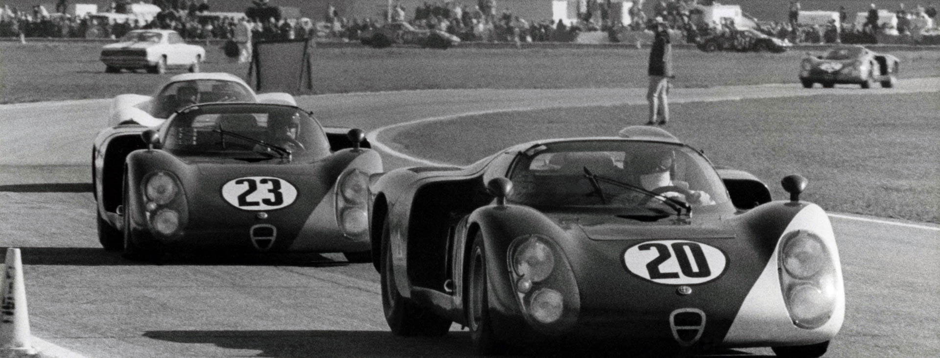 Ancora Daytona… Al "gioco della "tripletta" vollero partecipare anche i tedeschi, che sempre sul circuito di Daytona, il 4 febbraio 1968, riuscirono a piazzare in un fazzoletto il “terno secco” 54-52-51 con tre Porsche 907 HL (vincitore addirittura un quintetto: Elford, Neerpasch, Stommelen, Siffert ed Herrmann). L’edizione ’68 della gara endurance non fu però avara neppure col Tricolore, che subì il gap di potenza con le rivali più accreditate, ma riuscì a calare a sua volta un altro tris grazie alle Alfa Romeo T33/2 dell’Autodelta (2000 cm3), quinta, sesta e settima assolute, con una Ford Mustang (5000 cm3) a fare da cuscinetto rispetto al podio Porsche (2200 cm3).
