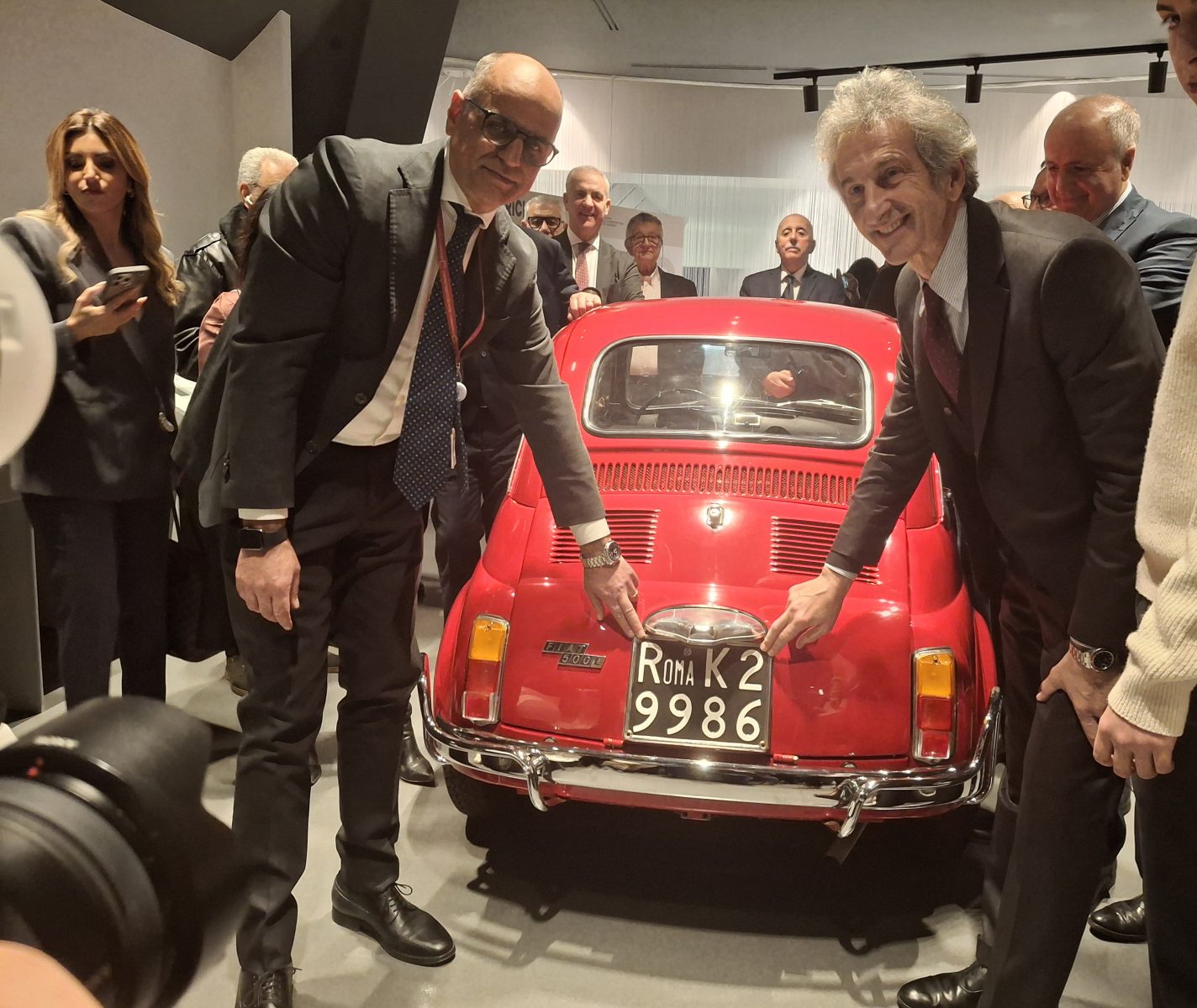 Una fiammante Fiat 500 rossa del 1972 è stata la prima vettura a ricevere oggi a Roma, in una cerimonia svolta all’Istituto Poligrafico e Zecca dello Stato, una delle nuove targhe prodotte grazie alla Circolare n. 33941/2025 del Ministero delle Infrastrutture e dei Trasporti. Costretta finora in una “quadrotta” dalla sigla “ZA”, la piccola di casa Fiat ha recuperato la targa dell’epoca sfoggiando un più coerente “Roma K2” con lettere bianche su fondo nero.