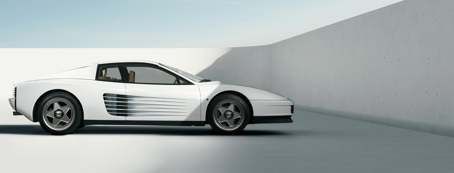 Bisogno di vintage. Il comunicato stampa della Testarossa di Officine Fioravanti non è stato scritto da un nostalgico cinquantenne alle prese con una crisi di mezza età, ma dagli stessi ventenni che stanno dietro questo progetto, ragazzi come Tusco e Giorgio e i loro collaboratori. Perciò colpiscono espressioni come "bisogno irrefrenabile di vintage", "neoclassicismo automobilistico", "emozioni lontane che ritornano nel presente". Cose così. Come la "loro" Testarossa bianca metallizzata, esplicitamente ispirata a quella di Sonny Crockett di Miami Vice.