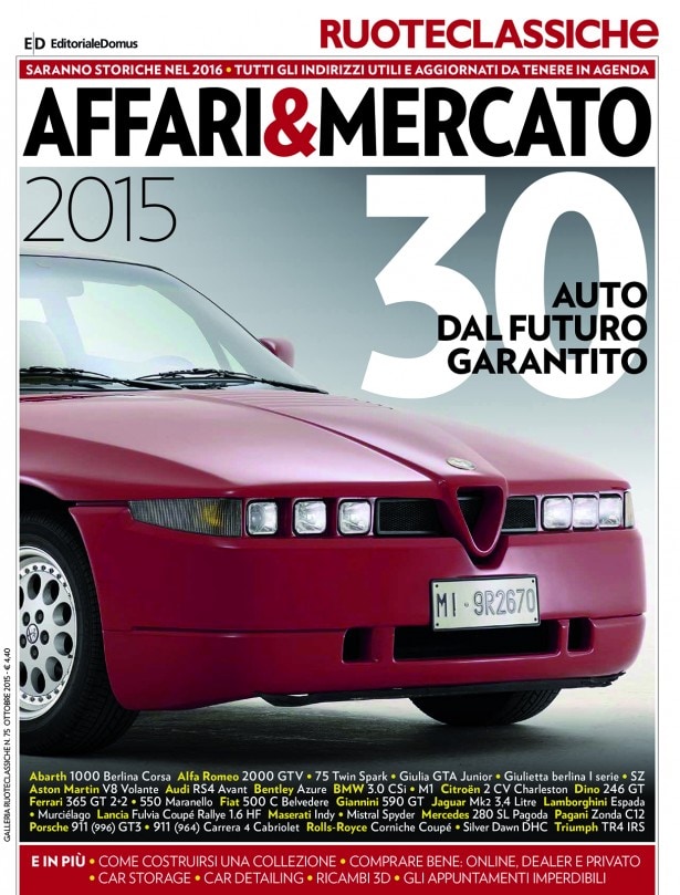 Esattamente un anno fa, assieme al nuovo Ruoteclassiche, debuttava in edicola un fascicolo intitolato "Affari & Mercato". Obiettivo: fornire ai lettori un concentrato di consigli e indicazioni utili per muoversi con destrezza negli acquisti e per scoprire nuove opportunità di risparmio o aree di interesse inedite per chi colleziona automobili storiche. Sull’onda del successo ottenuto da quella prima uscita, torniamo ora a replicare quella formula, che tanto gradimento ha ottenuto presso i nostri lettori, con un secondo volume e un nuovo pacchetto di consigli pratici. Tema principe saranno le auto che a giudizio dei nostri esperti sono destinate a rivalutarsi negli anni e che quindi rappresentano un buon investimento per il collezionista. Ne abbiamo scelte trenta, di cui molte sportive, suddivise in cinque classi di prezzo di sei modelli ciascuna: da 15 a oltre 100 mila euro (con punte superiori ai 250 mila). E con una finestra a parte su quelli che diventeranno storici nel 2016.