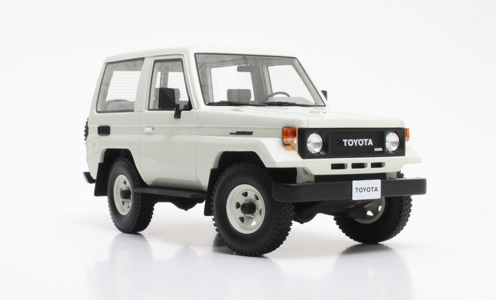 Tutto chiuso. Il modello è di resina, privo di aperture. La precisione non manca e i dettagli sono curati, completi. Se deciderete di collezionarla, questa 4x4 è un pezzo da non perdere, prodotta in tre colorazioni: verde, grigia e (la più famosa) bianca. Grazie alla confezione “finestrata”, potrete decidere quale sia la vostra tinta preferita, confrontanda con quelle disponibili prima dell’acquisto. Nei negozi il modellino si trova ancora a un prezzo medio elevato, attorno ai 170 euro.