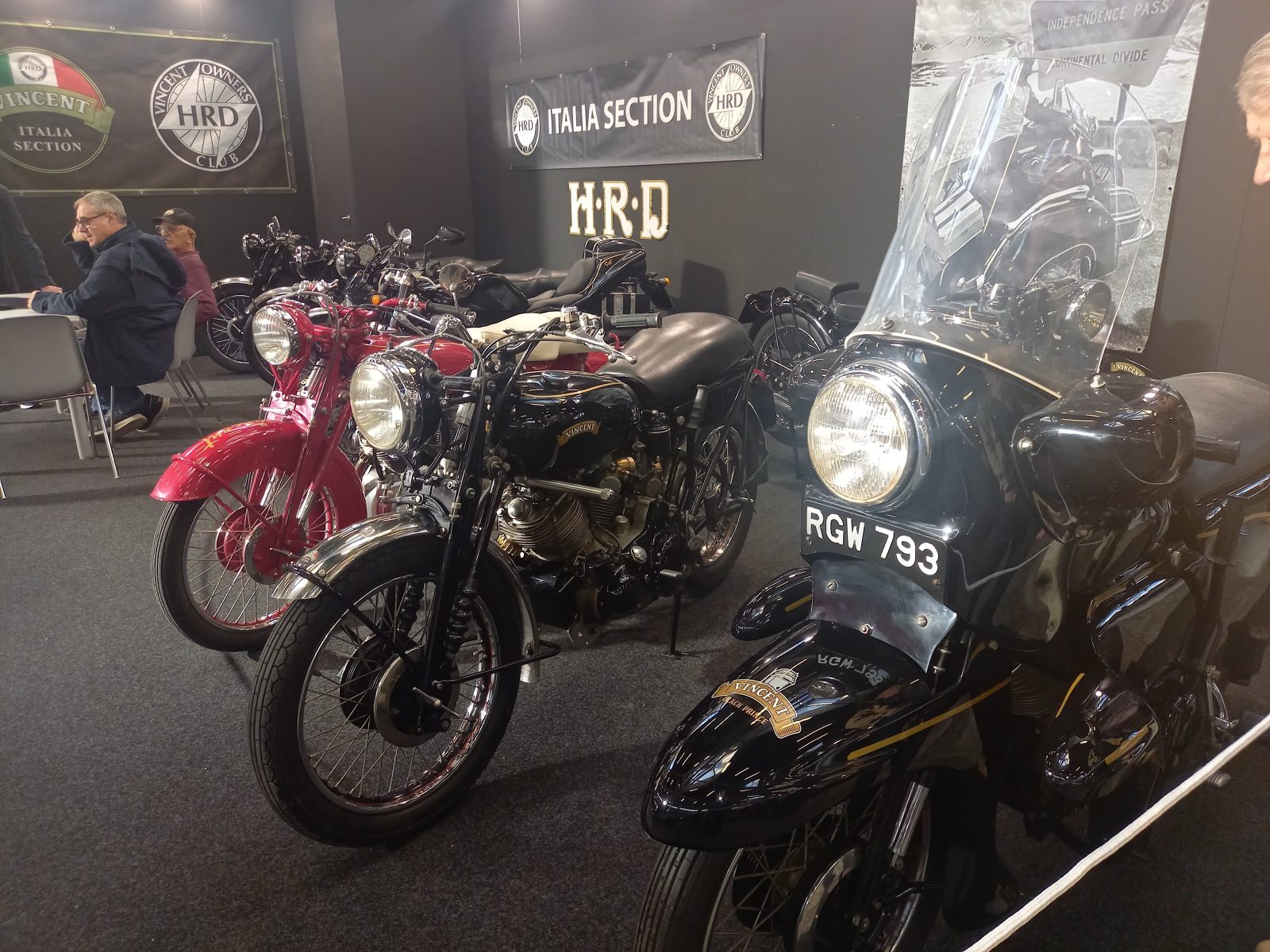 Ping Pong e record. Questo è il tema dello stand della Demm, che oggi ha un museo che ne ricorda la storia e le gesta anche in campo sportivo. Insieme alle moto da record di velocità, anche un gruppo di Ping Pong, ciclomotori a ruote piccole che hanno riscosso un buon successo al tempo. Altro marchio scomparso, ma sempre vivo nel ricordo degli appassionati, la HRD-Vincent, produttrice di moto di altissimo livello che si distinguevano, fra l’altro, per la sospensione posteriore, montata in anni in cui ancora si utilizzava il telaio rigido anche per i modelli più prestigiosi, e il doppio freno a tamburo che , quando la concorrenza adottava spesso, all’anteriore, un piccolo freno spesso inefficace, faceva davvero la differenza.