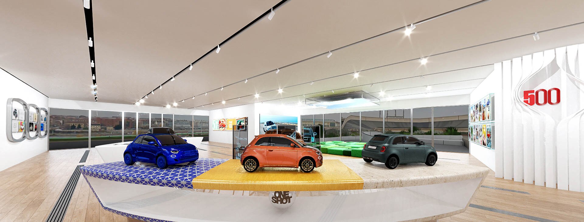 Un percorso, tre storie. Le tre generazioni della vettura ci raccontano il talento e l’ingegno di progettisti e designer che hanno dato vita agli oggetti simbolo del design italiano, esposti nell’area Made of Italy. Prodotti che come la Fiat 500, hanno introdotto nuovi concetti e nuove tecniche progettuali con un impatto tale sui consumatori da cambiare percezioni ed abitudini. L’area dedicata alla storia è un vero e proprio diario dei ricordi che raccoglie interviste, spot, eventi e riconoscimenti che hanno reso la Fiat 500 famosa in tutto il mondo. Non manca poi una raccolta di bozzetti e immagini che raccontano l’evoluzione dello stile e il percorso creativo all’origine delle tre generazioni della piccola di casa Fiat. Infine l’area dedicata alla Nuova 500: proposta come icona di una moderna Dolcevita, si può conoscere in tutti i dettagli grazie all’esperienza 3D. Nell’area dedicata alle "One-off" vengono presentate le tre fuoriserie della nuova Fiat 500 firmate da Armani, Bvlgari e Kartell, tutte caratterizzate da una lavorazione all'insegna dell'artigianalità e della sostenibilità. Alla fine del percorso la “Soothing area”, la tappa conclusiva pensata per rilassarsi sotto l’installazione al soffitto che ricorda un cielo illuminato: un rimando all’idea secondo cui la nuova 500 possa rendere più limpidi e sereni i cieli di tutte le città. Buon compleanno 500!