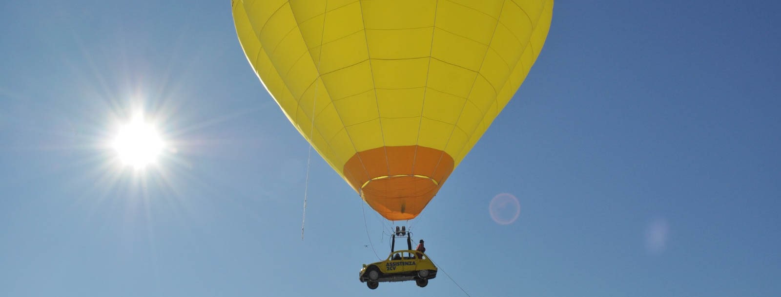Lo scorso 14 febbraio, i cieli di Beinette (CN) hanno visto il volo di una particolare mongolfiera: quella con una Citroën 2CV ancorata come cestello.
