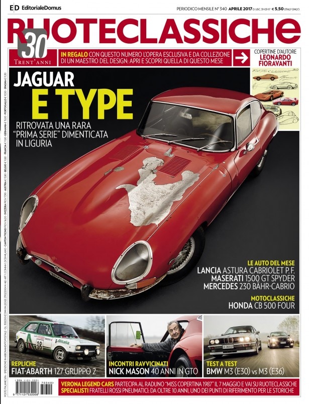 Praticamente un inedito: non era mai capitato in trent'anni (e 340 uscite) che Ruoteclassiche mettesse in copertina un cosidetto "barn find", un ritrovamento da fienile. Tant'è... Eccola, la nostra star, nonché "Rottame prezioso": una fiammante Jaguar E Type prima serie, ritrovata (così come la presentiamo) sotto un telo, nella campagna ligure.