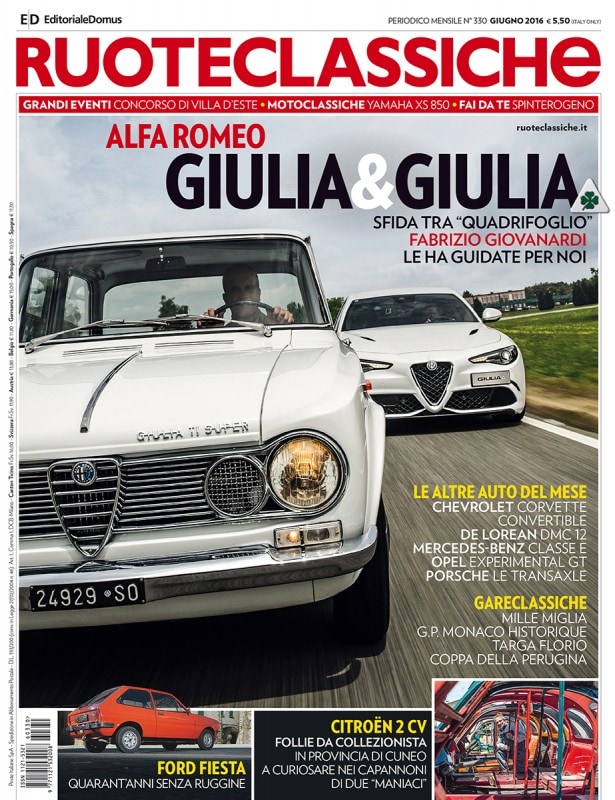 Comincia come di consueto dalla copertina la nostra presentazione del numero in edicola, che esibisce la coppia del momento: Alfa Romeo Giulia TI Super (1963) e nuovissima Giulia Quadrifoglio. Leggendaria protagonista di memorabili tirate "da casello a casello" la prima, vettura sportiva dell'atteso rilancio del marchio la seconda, anch'essa con quella denominazione "Quadrifoglio" che designava le versioni top di gamma. In coda, sette alternative alla Giulia, scelte tra le altre sportive della Gamma Alfa Romeo.