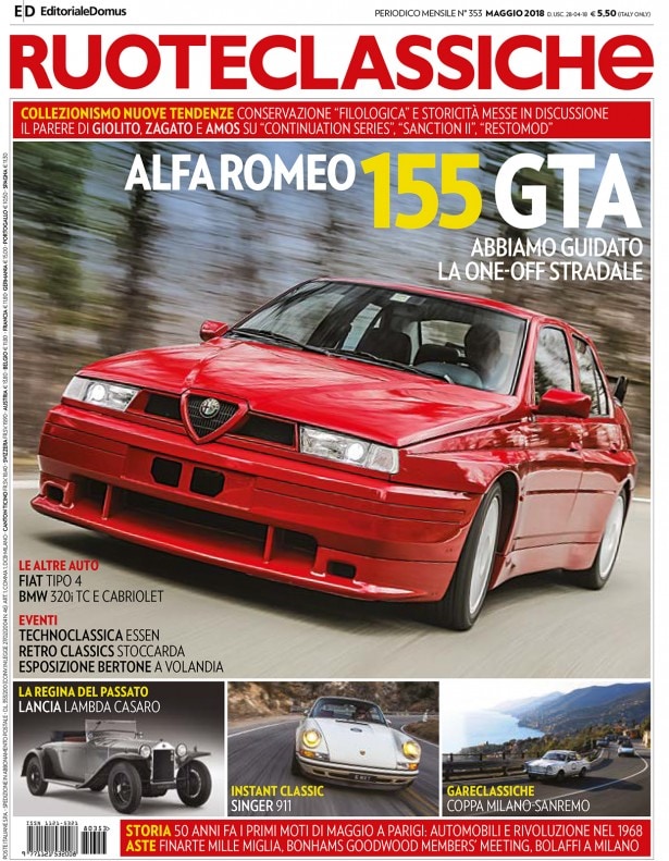 È un fiammante pezzo unico l’esemplare di Alfa Romeo 155 GTA Stradale protagonista della copertina del numero di maggio: fu realizzato nel 1993 per valutare una possibile produzione di serie che poi non andò in porto. Le fanno compagnia, nella sezione “Auto”, la Singer 911, sorta di reinterpretazione di una delle Porsche più iconiche, che va classificata tra le cosiddette “Restomod” (un neologismo che mixa le parole "Restauro" e "Modifica"), una filosofia di cui presentiamo una panoramica di esempi più o meno illustri.