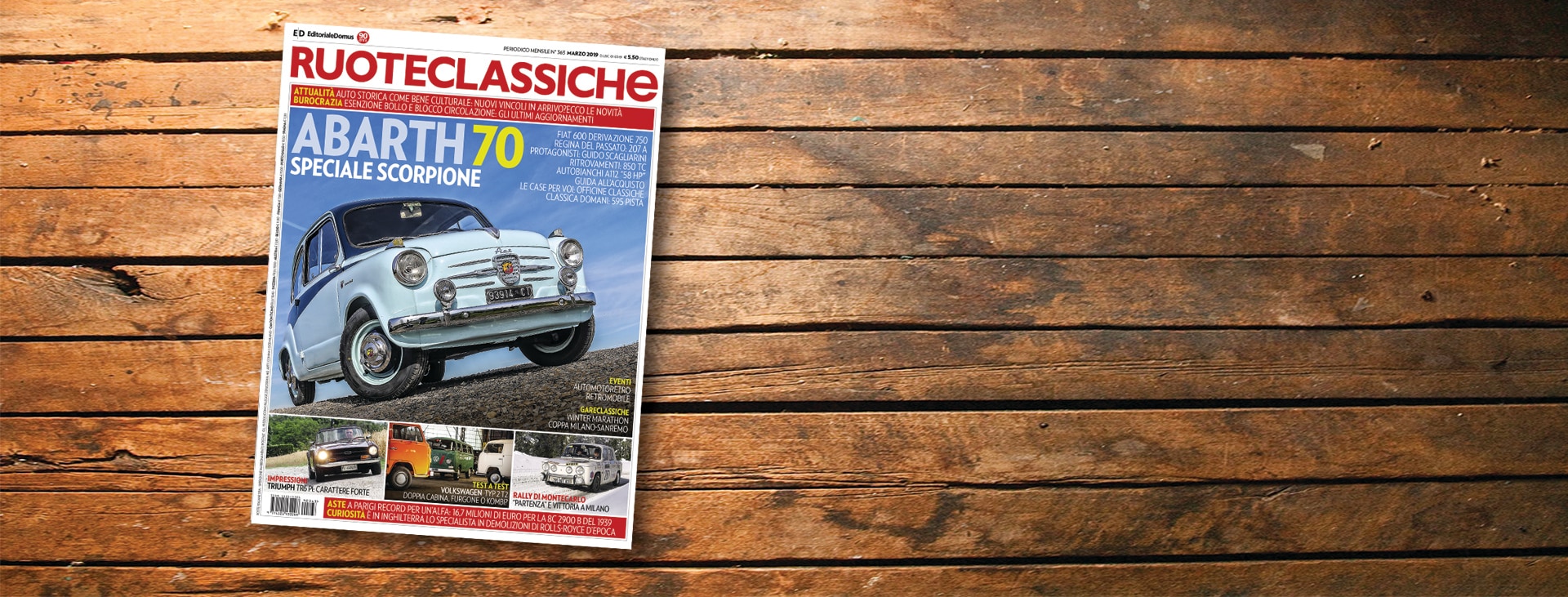 Sono i settant’anni dell’Abarth il fil-rouge di Ruoteclassiche di marzo. Un numero speciale che omaggia il marchio dello Scorpione e il suo fondatore, come già era accaduto in una rassegna tematica allestita nel corso dell’ultima edizione di Automotoretrò (di cui riportiamo anche un ampio reportage).