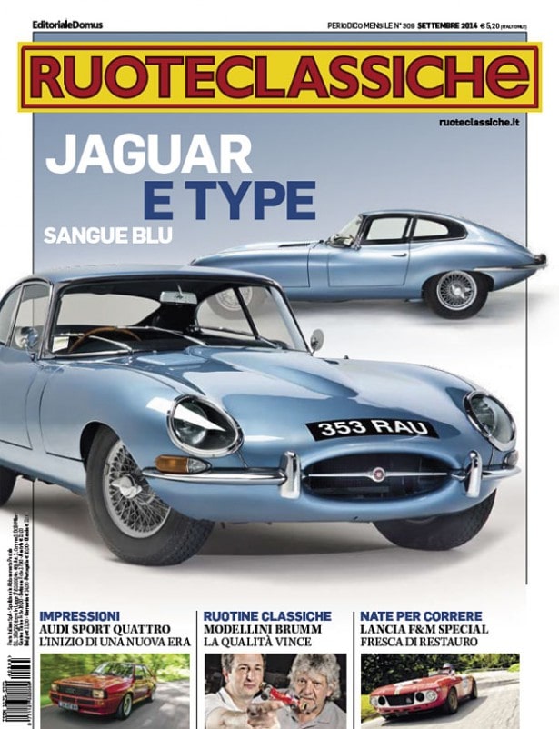 Difficile non riconoscere a colpo d’occhio la nostra regina di settembre: si tratta di una Jaguar “E Type” coupé del 1962. Una prima serie dunque, da molti giudicata quella esteticamente più equilibrata. Mossa da un generoso motore a sei cilindri in linea di 3,8 litri (3781 cm³ per la precisione) da 269 CV SAE, la “E Type” protagonista del servizio esibisce l’inusuale livrea Opalescent Silver Blue (celeste metallizzato), al tempo poco richiesta. Dal luglio 2008 appartiene ad un appassionato di Trieste, che l’ha acquistata per 45.000 euro dopo una lunga selezione, seguendo le preziose indicazioni dell’esperto restauratore Vittorio Klun. Nonostante i cinquant’anni suonati la sportiva britannica si rivela tutt’altro che posata: se si procede allegri le derapate in uscita dalle curve sono la regola.