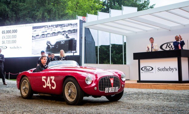 Su tutte si è imposta una spettacolare Ferrari 212 Export Barchetta del 1952, che ha toccato la cifra record (per il modello) di 6.720.000 euro, facendo scoppiare la tribuna degli spettatori in un fragoroso applauso. Ma sono state un po' tutte le Ferrari all'incanto a fare la parte del leone strappando i prezzi più alti: una 288 GTO del 1985 è stata battuta a 1.904.000 euro; una Enzo del 2002 a 1.260.000, una F50 del 1996 a 1.232.000 e una F40 del 1991 a 1.008.000. L'unica vettura a stare al passo con quelle del Cavallino è stata una Lamborghini Miura P400 S del 1971, che ha cambiato proprietario per la modica cifra di 1.019.200 euro.