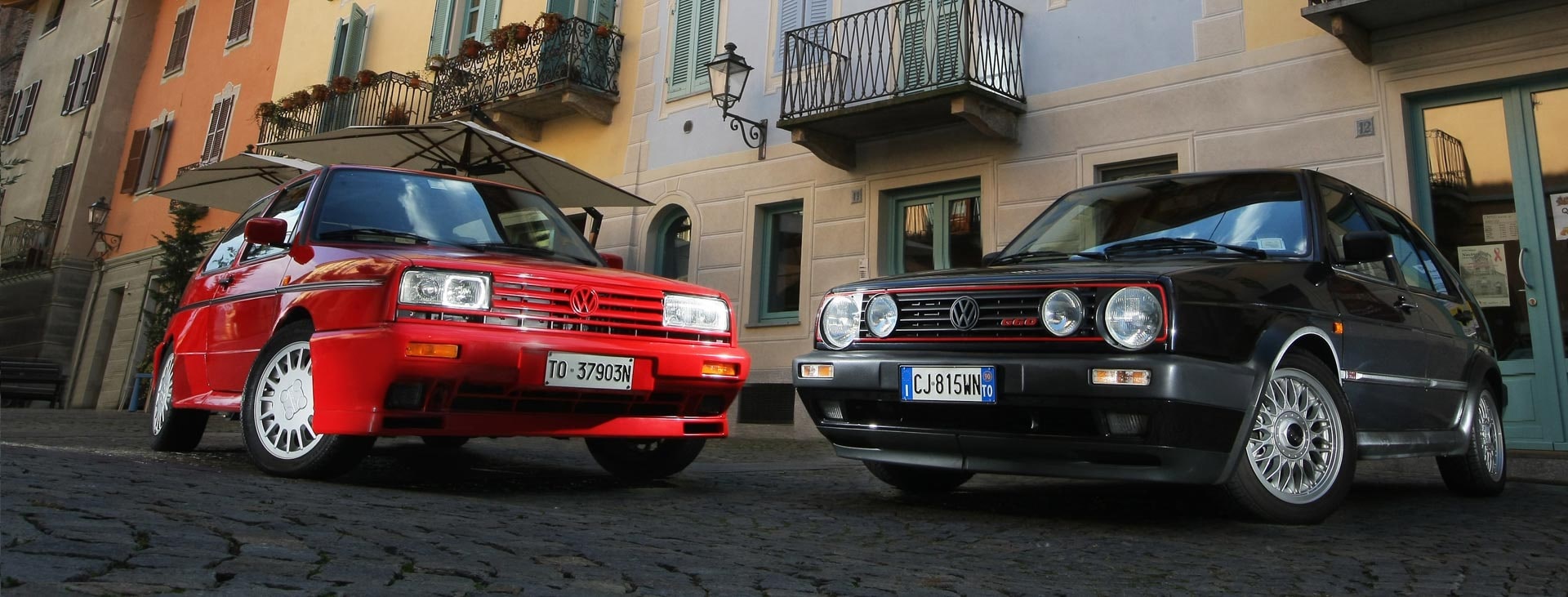 Compressore: ecco ciò che fa la differenza fra le nostre G60 e tutte le altre Golf, compresa la mitica GTI. Differenza di prestazioni prima di tutto; di importanza collezionistica in secondo luogo, perché parliamo di macchine all’epoca esclusive e oggi ancor più rare (nel caso particolare della G60 Rallye, è più giusto dire “esclusivissime” e “rarissime”). La Golf GTI G60 del nostro servizio, 1,8 litri di cilindrata, 160 CV, trazione anteriore, appartiene al piemontese Ermanno Mastandrea, dipendente della celebre Barilla. Questi, nel 1990, aveva già posseduto una G60, ma se l’era goduta poco, perché gli era stata rubata quasi subito. Dieci anni dopo, nel 2001, a Mastandrea torna la voglia della Golf G60: la cerca, la trova, la compra. La carrozzeria è sana, il contachilometri segna 200.000, prezzo concordato 3.500.000 lire. Ma non finirà qui… La rossa G60 Rallye monta lo stesso motore della G60, ma si distingue da questa per i parafanghi allargati e, soprattutto, per la trazione integrale Syncro. Appartiene a Cristian Romeo, anch’egli piemontese, capo salone di una concessionaria Audi con un debole per le sportive tedesche (quasi un dovere, dato il suo lavoro). La Golf Rallye fu studiata per offrire una buona base di partenza per le Golf destinate alle corse. Rimase in produzione fra il 1989 e il 1990, quanto bastò per sfornare i 5000 esemplari necessari per l’omologazione in Gruppo A, anche se le scorte di magazzino si esaurirono soltanto nel 1991, perché non era facile piazzare questa Golf dal prezzo all’epoca stratosferico: 40.257.000 lire. La G60 Rallye di Romeo è assolutamente come mamma Volkswagen la fece, tutta originale, con 90.000 km all’attivo percorsi quasi tutti dal primo proprietario.