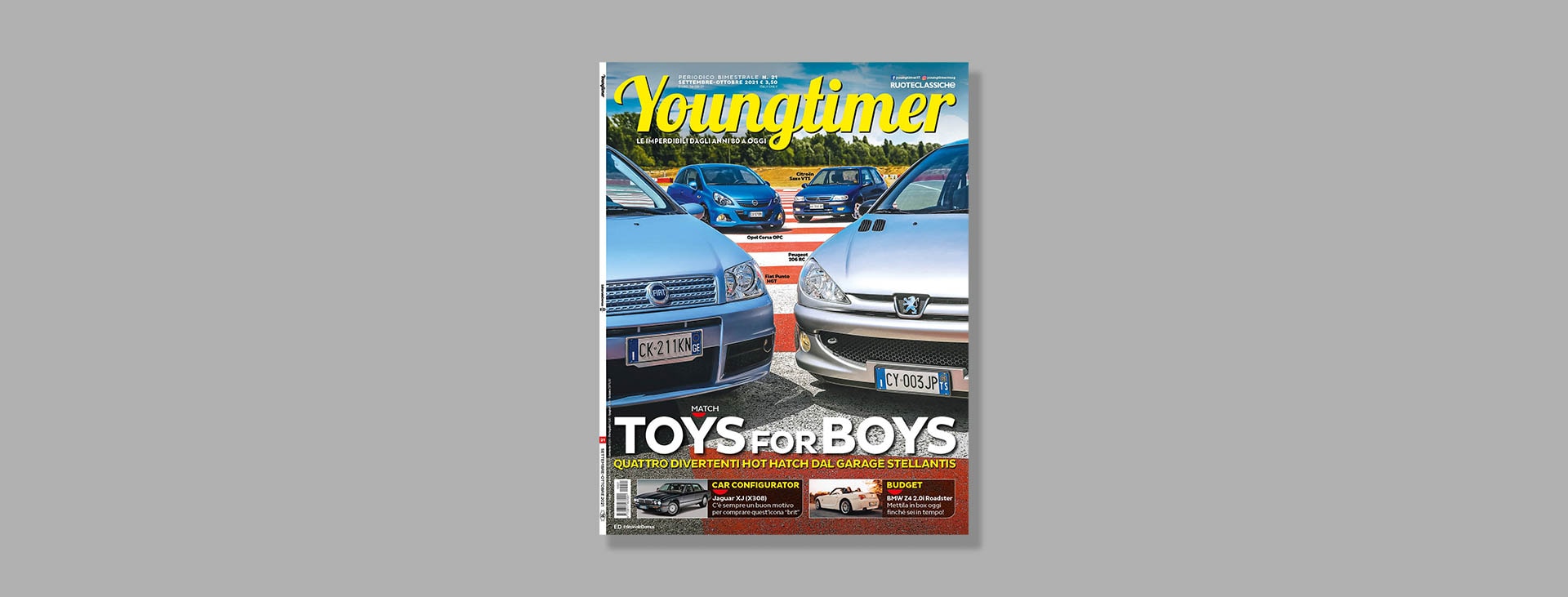 L’attesa è finita, ecco Youngtimer numero 21 ! Iniziamo subito con la copertina, dove troviamo un quartetto di hot hatch anni 2000. I nomi? Citroen Saxo VTS, la Fiat Punto HGT, l’Opel Corsa OPC e la Peugeot 206 RC. Passiamo poi all’affascinante Jaguar XJ8 (X308), di cui parliamo nel Car Configurator. Due, come sempre, le proposte Budget: l’Audi S6 4.2 V8 Avant e la BMW Z4 Roadster. Nella rubrica Supercar vi presentiamo una vera leggenda dell’automobilismo, la Lamborghini Countach nell’edizione celebrativa “25° Anniversario”. Non una qualsiasi ma quella di un tale Horacio Pagani…